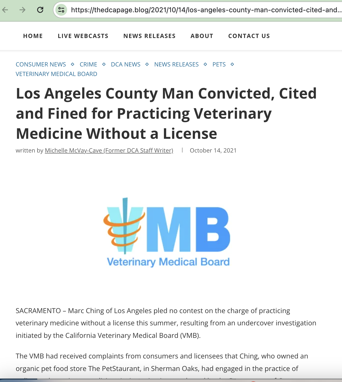 • UPDATE ON MARC CHING AND RING OF ANIMAL ABUSERS