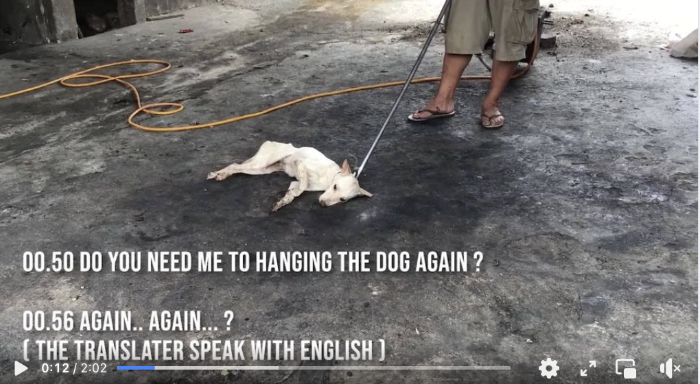 We named this dog Scout she was another dog that was used by Marc Ching and Animals Hope and Wellness Foundation. Marc Ching paid for Scout to be torture and murder in Indonesia. He filmed this on this own phone zoomed in filmed the horrific abuse and he used the footage at charity events, celebrity campaign videos and social media campaigns for scam donations. Scout was hung up and left for dead.